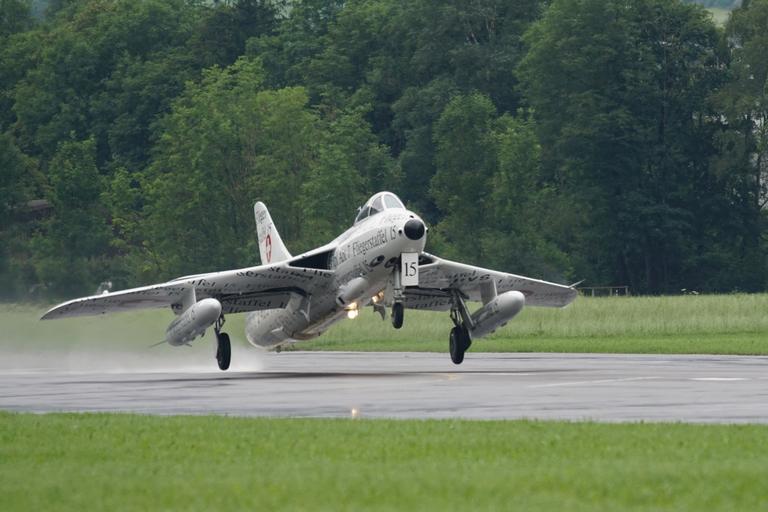 Keywords: aircraft hunter papyrus-hunter fighter aircraft a beam civil oldtimer built in 1950 air show start mollis switzerland