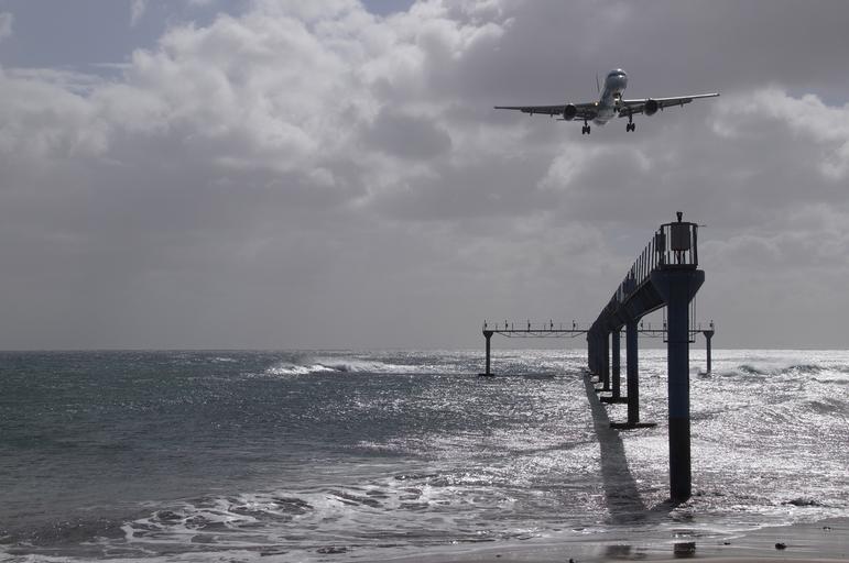 Keywords: aircraft landing country mark jet restless sea beach holiday holidays anticipation sparkle clouds lanzarote