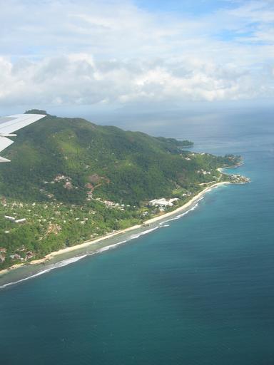 Keywords: aircraft landing overview view sky fly from above island aerial view