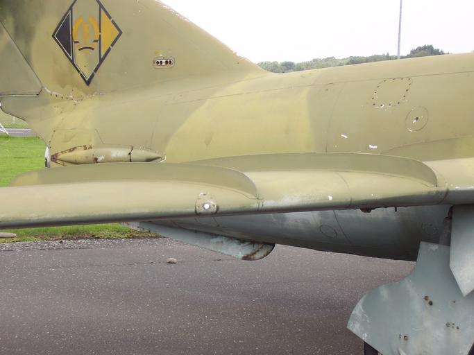 Keywords: Airforce Museum Berlin-Gatow 125.JPG Luftwaffenmuseum der Bundeswehr; Airforce Museum of the Bundeswehr; Berlin-Gatow Own 2007-08 RosarioVanTulpe Mikoyan-Gurevich MiG-17PF at the Luftwaffenmuseum Berlin-Gatow Aircraft tails Wing fences