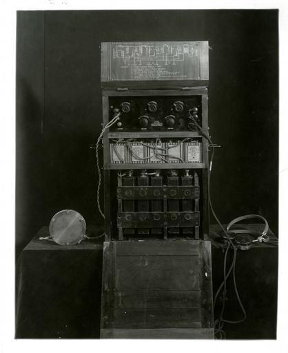 | Keywords: Airplane Detection Appt002.jpg Three-stage amplifying set device for detecting airplanes Acoustic Laboratory Frankford Arsenal open Operation top 1 Connect condenser detector to input ; 2 Connect telephone to output ; 3 Decrease grid leaks to minimum resistance ; 4 Set filament controls at OFF position ; 5 Turn on A Battery by pulling out snap switch ; 6 Increase filament current of last tube to almost full value ; 7 Set filament control knobs of other tubes to index marks Never turn past these marks ; 8 Increase grid leak resistance until maximum amplification is obtained ; 9 No further attention is required National Institute of Standards and Technology 1926-08-06 National Institute of Standards and Technology The images in the Airplane Detection Apparatus Photographic Collection are in the public domain and are not subject to copyright in the United States However please pay special attention to the individual works to make sure there are no copyright restrictions indicated Individual works may require securing other permissions from the original copyright holder Use of the images from NIST Digital Collections is not restricted but a statement of attribution is required Please use the following attribution statement National Institute of Standards and Technology Digital Collections Gaithersburg MD 20899 PD-USGov National Bureau of Standards National Institute of Standards and Technology Sound locators Frankford Arsenal |