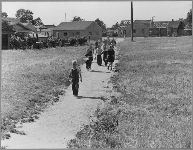 | Keywords: Airport tract, near Modesto, Stanislaus County, California. Children going to the Wilson Elementary . . . - NARA - 521634.jpg Scope and content Full caption reads as follows Airport tract near Modesto Stanislaus County California Children going to the Wilson Elementary School at 8 30 A M in an area where many migrant families are resettling Forty-seven percent B A E figures of the children who attend this school belong to families who have entered the state of California since 1930 General notes 521634 Local identifier 83-G-41393 Department of Agriculture Bureau of Agricultural Economics Division of Economic Information ca 1922 - ca 1953 NARA-Author Lange Dorothea 1895-1965 Photographer 1372774 <br /> Still Picture Records Section Special Media Archives Services Division NWCS-S National Archives at College Park 8601 Adelphi Road College Park MD 20740-6001 1940-05-10 Record group Record Group 83 Records of the Bureau of Agricultural Economics 1876 - 1959 Record group ARC 412 Photographic Prints Documenting Programs and Activities of the Bureau of Agricultural Economics and Predecessor Agencies compiled ca 1922 - ca 1947 documenting the period ca 1911 - ca 1947 Series ARC 521048 File unit File unit ARC Variant control numbers NAIL Control Number NWDNS-83-G-41393 Other versions <gallery> File Airport_tract _near_Modesto _Stanislaus_County _California _Children_going_to_the_Wilson_Elementary_ _ _ _-_NARA_-_521634 tif tif File Airport_tract _near_Modesto _Stanislaus_County _California _Children_going_to_the_Wilson_Elementary_ _ _ _-_NARA_-_521634 jpg jpg </gallery> NARA-cooperation PD-USGov Dorothea Lange Stanislaus County California School children of the United States Children walking Way to school |