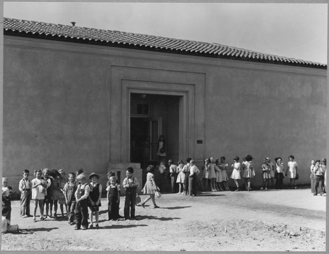 | Keywords: Airport tract, near Modesto, Stanislaus County, California. Just before 9 o'clock at the Wilson Elem . . . - NARA - 521631.jpg Scope and content Full caption reads as follows Airport tract near Modesto Stanislaus County California Just before 9 o'clock at the Wilson Elementary School which is attended by children from the airport tract Children from two distinct sections the airport tract and the suburban subdivisions attend this school and social antagonisms exist Forty-seven percent of the total enrollment of this school is children from families who have come to this state since 1930 General notes 521631 Local identifier 83-G-41390 Department of Agriculture Bureau of Agricultural Economics Division of Economic Information ca 1922 - ca 1953 NARA-Author Lange Dorothea 1895-1965 Photographer 1372774 <br /> Still Picture Records Section Special Media Archives Services Division NWCS-S National Archives at College Park 8601 Adelphi Road College Park MD 20740-6001 1940-05-10 Record group Record Group 83 Records of the Bureau of Agricultural Economics 1876 - 1959 Record group ARC 412 Photographic Prints Documenting Programs and Activities of the Bureau of Agricultural Economics and Predecessor Agencies compiled ca 1922 - ca 1947 documenting the period ca 1911 - ca 1947 Series ARC 521048 File unit File unit ARC Variant control numbers NAIL Control Number NWDNS-83-G-41390 Other versions <gallery> File Airport_tract _near_Modesto _Stanislaus_County _California _Just_before_9_o'clock_at_the_Wilson_Elem_ _ _ _-_NARA_-_521631 tif tif File Airport_tract _near_Modesto _Stanislaus_County _California _Just_before_9_o'clock_at_the_Wilson_Elem_ _ _ _-_NARA_-_521631 jpg jpg </gallery> NARA-cooperation PD-USGov Elementary schools in California Children in California Modesto California Buildings in Stanislaus_County _California Dorothea Lange 1940 in California Modesto |