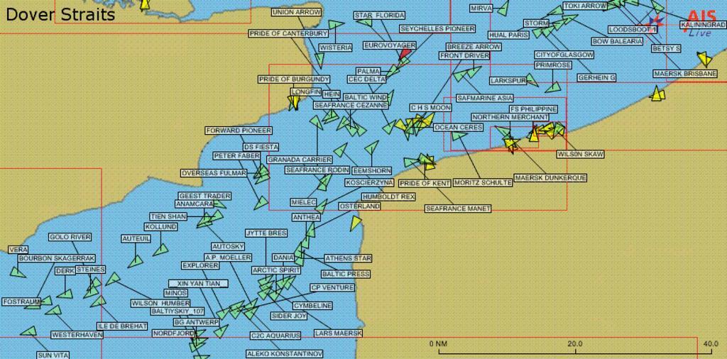 | Keywords: AIS Manche Est.png en Display of maritime traffic provided by AIS Only vessels equipped with AIS are displayed which excludes most fishing boats pleasure craft inland navigation and vessels less than 300 tons Location Dover Straits/English Channel fr Affichage du trafic maritime fourni par le système AIS Seuls les navires équipés du dispositif AIS sont affichés ce qui exclut la plupart des bateaux de pêche et de plaisance ainsi que les cargos n'effectuant que du transport domestique et de moins de 300 tonneaux Lieu Manche Est 2006-01-22 own fr User Pline Maps of the English Channel Automatic Identification System fr wikipedia Pline Original upload Image originally uploaded by fr User Pline on fr wikipedia Transferred to commons by User Korrigan on 2006 1 23 |