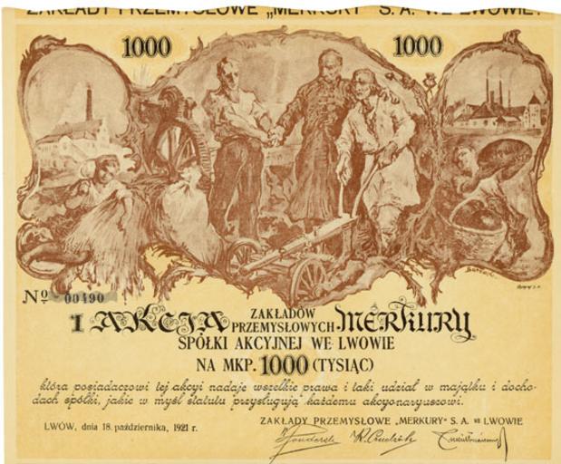 | Keywords: Akcia BatowskiS.jpg Summary pl Akcii Zakladow Przemyslowych Merkury S A we Lwowie; Autor-polski malarz Stanisław Batowski Kaczor ru Акции П омышленных п едп иятий е ку ий во Львове Авто - польский художник Станислав Качо Батовский 1866-1946 http //www hwph de/images/pa20/Los0136 jpg Creator Stanisław Kaczor-Batowski 1921 Licensing PD-Art PD-old-auto-1923 1946 Stanisław Batowski Kaczor Undeleted in 2017 | ||||