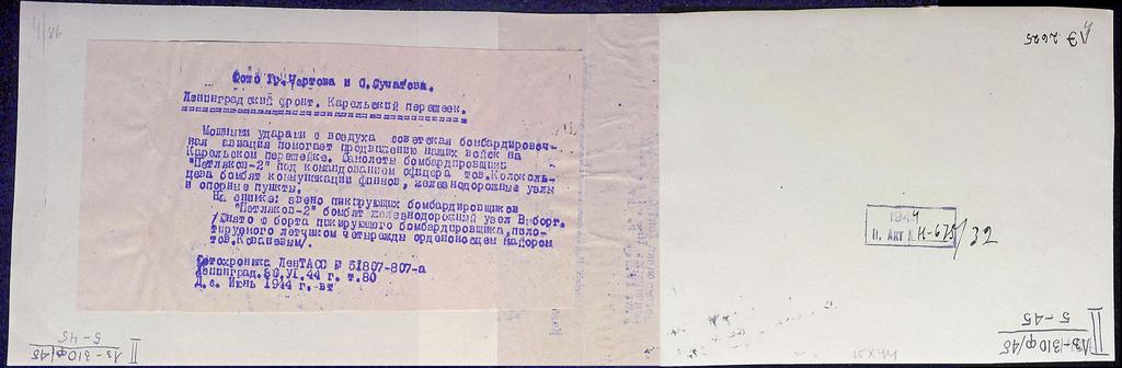 Keywords: Заглавие:Звено пикирующих бомбардировщиков &quot;Петляков-2&quot; бомбит железнодорожный узел Выборг (снято с борта бомбардировщика летчика четырежды орденоносца майора Кованева). Июнь 1944 г. : [фотография] Место издания:Ленинград Издательство:ЛенТАСС Дата издания:1944 Физическое описание:1 л. Библиотечный фонд:Российская Национальная Библиотека <a href="https://vivaldi.nlr.ru/al000001079/details" rel="nofollow">vivaldi.nlr.ru/al000001079/details</a> photo wwii 1944 vyborg фотография выборг втораямироваявойна великаяотечественнаявойна рнб электронныйресурсрнб лентасс