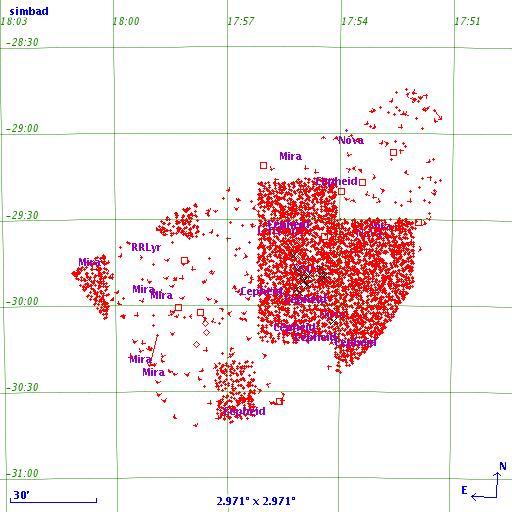 Keywords: Aladin2011.04.01-overlap*V*.png en Sky plot of the stars including variable stars within the overlap of the two detection error regions Credit Aladin at SIMBAD Me using Aladin at SIMBAD url http //simbad u-strasbg fr/simbad/ Me and Aladin at SIMBAD 2011-03-31 I sent an email to question simbad u-strasbg fr regarding use of applet Aladin generated sky plots Pierre Fernique astro unistra fr stated There is absolutely no problem to use them for Wikipedia pages A citation of Aladin would be appreciated Legend red - star red square - nebula red diamond - IR object X - X-ray source red + - HII region Nova - nova Mira - Mira-type variable Cepheid - Cepheid variable RRLyr - RR Lyrae variable Cc-zero X-ray astronomy Astronomical diagrams |