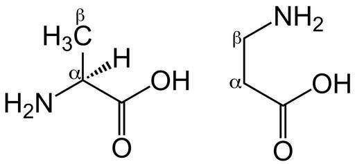 Keywords: Alanines V.1.svg en S -Alanine compared with beta-Alanine de Vergleich zwischen S -Alanin und beta-Alanin own Jü 2011-05-29 Stellungsisomere Cc-zero Alanine