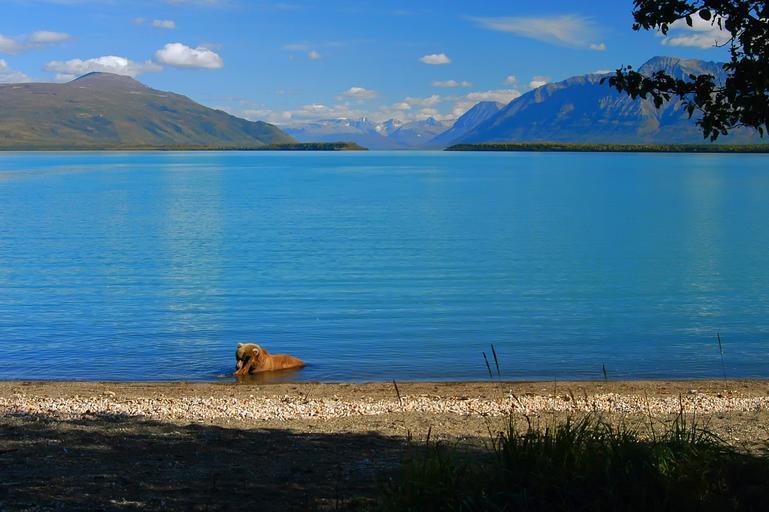 Keywords: alaska brown bear wildlife mountains landscape scenic lake water reflections sky clouds beach nature outside countryside