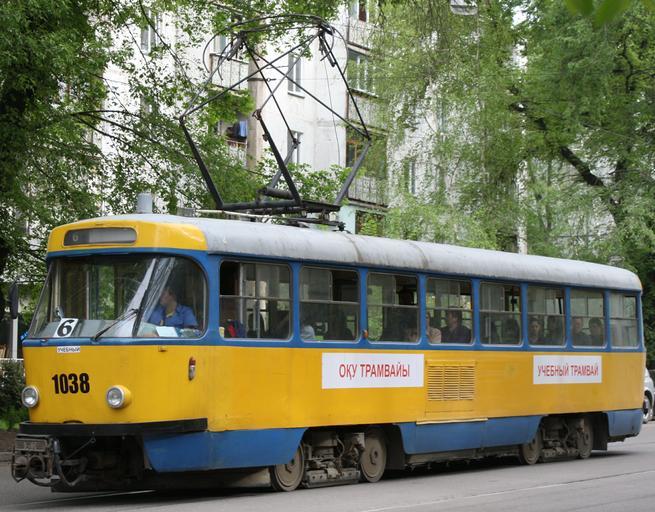 Keywords: ALAtramwayTraining.jpg en The training tramway in Almaty Kazakhstan ru Учебный т амвай в Алма-Ате Казахстан Own Ds02006 2009-04-25 43 26234 76 92445 Tatra T4 in Almaty Blue and yellow trams Number 1038 on vehicles 2009 in tram transport