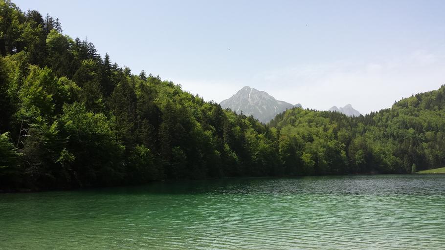 Keywords: alatsee allgäu idyll water still summer mountains nice weather scenic alpine more bergsee füssen tree nature idyllic