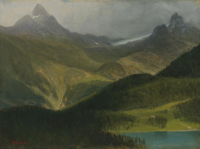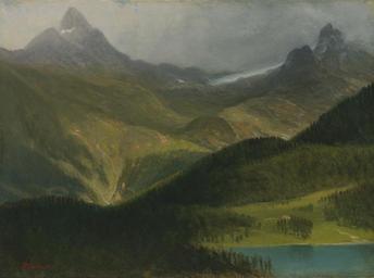 Keywords: Albert Bierstadt - Mountain landscape (01).jpg Artwork Creator Albert Bierstadt oil paper cardboard cm 35 6 48 3 accession number object history Private Collection circa 1930s<br/>By descent in the family sold Sotheby's New York May 22 2002 lot 133 <br/>Marbella Gallery New York acquired at the above sale <br/>Salander O'Reilly Galleries New York sold Sotheby's New York November 30 2005 lot 161 <br/>Ted Church Saint Albans Vermont acquired at the above sale <br/>Gifted by the estate of the above to the last owner circa 2010 credit line exhibition history ABierstadt ~ lower left signature http //www sothebys com/de/auctions/ecatalogue/2012/american-paintings-n08828/lot 49 html Sotheby's New York 05 April 2012 lot 49 PD-old-auto-1923 1902 Landscape paintings of the United States by Albert Bierstadt Images from Sotheby's