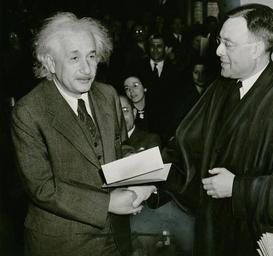 | Keywords: albert einstein 1 october 1940 phillip judge forman surrender of certificate american citizen theoretician physician scientist genius big man famous person e mc2 equation theory of relativity general relativity quantum mechanics brownian motion 1921 nobel prize in physics 1925 medal copley max-planck medal in 1929 birth death 1879-1955 black and white photo |