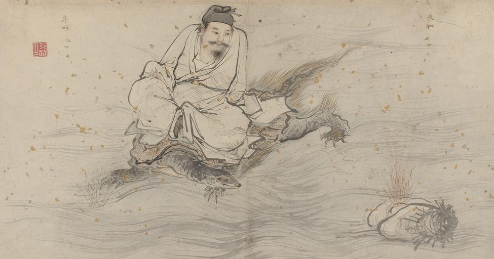 | Keywords: Album of 18 Daoist Paintings - 16.jpg The immortal Lan Caihe is a loosely defined character among the Eight Immortals and has been depicted as a boy a girl a hermaphrodite or as here a man In this album leaf he rides on the back of a turtle a symbol of longevity Chester Beatty Library Early 16th century Ink and light colors on gold-flecked paper; album leaf 31 6 Ă— 59 3 cm Shanghai Museum http //www lacma org/art/exhibition/ming-masterpieces-shanghai-museum Ming Masterpieces from the Shanghai Museum exhibit Los Angeles Los Angeles County Museum of Art http //www lacma org/album-daoist-paintings Daoist Paintings by Zhang Lu Los Angeles Los Angeles County Museum of Art http //www cbl ie/china/Item aspx itemId 62 ˜Lan Caihe ™ Dublin Chester Beatty Library object history exhibition history credit line This is one of eighteen paintings comprising an album <gallery> File Album of 18 Daoist Paintings - 1 jpg File Album of 18 Daoist Paintings - 2 jpg File Album of 18 Daoist Paintings - 3 jpg File Album of 18 Daoist Paintings - 4 jpg File Album of 18 Daoist Paintings - 5 jpg File Album of 18 Daoist Paintings - 6 jpg File Album of 18 Daoist Paintings - 7 jpg File Album of 18 Daoist Paintings - 8 jpg File Album of 18 Daoist Paintings - 9 jpg File Album of 18 Daoist Paintings - 10 jpg File Album of 18 Daoist Paintings - 11 jpg File Album of 18 Daoist Paintings - 12 jpg File Album of 18 Daoist Paintings - 13 jpg File Album of 18 Daoist Paintings - 14 jpg File Album of 18 Daoist Paintings - 15 jpg File Album of 18 Daoist Paintings - 16 jpg File Album of 18 Daoist Paintings - 17 jpg File Album of 18 Daoist Paintings - 18 jpg </gallery> accession number place of creation China during the Ming dynasty http //www cbl ie/china/ Telling Images of China exhibit Dublin Chester Beatty Library <small><small>http //www cbl ie/china/app_themes/exhibit/img/exhibits/large/img36-16 jpg direct link </small></small> Custom license marker 2014 10 21 PD-Art-100 Uploaded with UploadWizard Eight Immortals Lan Caihe Zhang Lu 1464-1538 Turtles in art |