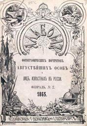 | Keywords: Album of Photographic Portraits of Their Majesties and The Russia's Famous, 1865 vol.2. Title page.jpg Album of Photographic Portraits of Their Majesties and The Russia's Famous / by A Denier SPb 1865 Vol 2 Title page Альбомъ фотог афическихъ по т етовъ августѣйшихъ особъ и лицъ извѣстныхъ въ Россiи / Издаваемый Г Денье омъ въ С -Пете бу гѣ - Санкт-Пете бу г 1865 Вып 2 Титульный лист 1865 http //andcvet narod ru/sam/sam html andcvet narod ru cropped corrected Адольф Ша лемань Г ав П Ку енков PD-old-100 Title pages 1865 engravings Album of Photographic Portraits of Their Majesties and The Russia's Famous 1865-66 Adolf Charlemagne |
