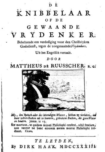 | Keywords: Alciphron 1733 title page Dutch.png en The title page of the 1733 Dutch translation by Mattheus de Ruusscher of the book Alciphron 1732 by George Berkeley nl De titelpagina van Mattheus de Ruusschers Nederlandse vertaling uit 1733 van het boek Alciphron 1732 van George Berkeley 1733 https //books google nl/books id Gl5gAAAAcAAJ Google Books Mattheus de Ruusscher Dirk Haak unknown artist other versions PD-old-70-1923 Criticism of atheism Freethought Christian literature George Berkeley Atheism in the Netherlands |