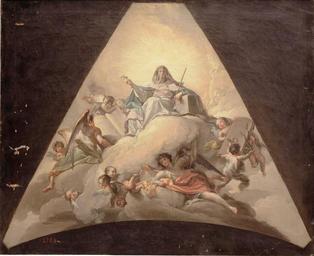 | Keywords: Alegoría de la Iglesia, de Francisco Bayeu (Museo del Prado).jpg La obra es una alegoría de la Iglesia Católica y es un boceto preparatorio sobre lienzo para uno de los frescos que Francisco Bayeu pintó en el siglo XVIII en la capilla del Palacio Real de Aranjuez ~ 1778 oil on canvas Size cm 57 46 Institution Museo del Prado Depositado en el Institution Museu de Menorca https //www museodelprado es/coleccion/obra-de-arte/alegoria-de-la-iglesia/fa9eae4b-4e25-48d0-b46d-5ec7da557063 searchid 35cb9088-fa4b-8366-7432-201e11aa4384 accession number P02492 https //content1 cdnprado net/imagenes/Documentos/imgsem/fa/fa9e/fa9eae4b-4e25-48d0-b46d-5ec7da557063/f16f8a3a-cc1f-4127-89c6-d2fd0271e1b7 jpg PD-old-100 18th-century allegorical paintings Paintings by Francisco Bayeu in the Prado Museum Spanish 18th-century paintings in the Museo del Prado Paintings in the Menorca Museum 1770s paintings in Spain |