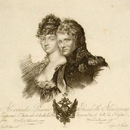 | Keywords: Alexander I with wife by anonym after Sant-Auben (after 1807).jpg ru Г ачев А П Импе ато Александ I и импе ат ица Елизавета Алексеевна Эстамп - 1812 - 1 л Г авю а пункти ом езцом century 19 http //www nlr ru/res/refer/romanov/article php num 168 19th century author PD-Art Portraits of Alexander I with wife Engravings of Elizabeth Alexeevna Files uploaded by Shakko from various sources Uploaded with UploadWizard | ||||