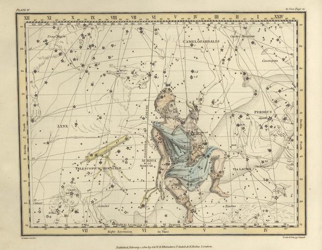 | Keywords: Alexander Jamieson Celestial Atlas-Plate 4.jpg of their contents and accompanied by catalogues of the stars and astronomical exercises http //aa usno navy mil/library/rare/jamieson_plate4 jpg United States Naval Observatory Library 1822 Alexander Jamieson PD-old-100 A Celestial Atlas by Alexander Jamieson Auriga Telescopium |