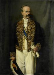 | Keywords: Alexander Willem Frederik Idenburg (1861-1935). Gouverneur-generaal (1909-16) Rijksmuseum SK-A-3815.jpeg bicorne in his right hand and gloves in his left Part of a series of portraits of the governors-general of the former Dutch East Indies Portret van Alexander Willem Frederik Idenburg 1861-1935 Gouverneur-generaal 1909-16 Kniestuk staande met hoofd iets naar rechts De steek in de rechterhand handschoenen in de linkerhand Onderdeel van een reeks van portretten van de gouverneurs-generaal van het voormalige Nederlands Oost-Indië between 1909 1915 Ucfirst Oil on canvas cm 145 5 107 Institution Rijksmuseum Amsterdam SK-A-3815 object history between 1909 1915 commission Alexander Willem Frederik Idenburg 1861-1935 LangSwitch die the la de Landvoogd-Galerij ProvenanceEvent 1950 transfer LangSwitch das the au het Rijksmuseum Amsterdam Amsterdam LangSwitch die the la de Landvoogd-Galerij Paleis Rijswijk Weltevreden Jakarta exhibition history credit line <u>Jan</u> <u>Franken</u> signature bottom right ~ accession number SK-A-3815 place of creation The Hague www rijksmuseum nl http //www rijksmuseum nl Home http //www rijksmuseum nl/collectie/SK-A-3815 Info PD-US PD-old Data and photography rights All data and all images made available through the API are either in the public domain or are subject to a CC0 license https //www rijksmuseum nl/en/api/terms-and-conditions-of-use cc-zero Uploaded with GWToolset Alexander Willem Frederik Idenburg 1861-1935 Gouverneur-generaal 1909-16 Rijksmuseum SK-A-3815 http //www rijksmuseum nl/media/assets/SK-A-3815 Jan Franken Images uploaded by Fæ Images from the Rijksmuseum 20th-century portrait paintings in the Rijksmuseum Amsterdam 1909> Dutch 20th-century paintings in the Rijksmuseum Amsterdam Franken Jan Alexander Willem Frederik Idenburg 20th-century oil portraits of standing men at three-quarter length 1909> 20th-century portraits in ceremonial costumes Portrait paintings of men holding bicorne hats 1909> Portrait paintings of men holding swords 1909> Sash of the Order of the Dutch Lion in portrait paintings 1909> Stars of chivalric orders in portrait paintings 1909> |