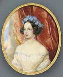 Keywords: Alexandra Nikolaevna, att. V.Hau (c. 1844, priv.coll.).jpg GRAND DUCHESS ALEXANDRA NICOLAEVNA OF RUSSIA 1825-1844 PRINCESS OF HESSE IN PALE BLUE-BORDERED WHITE DRESS DIAMOND SET SAPPHIRE DROP EARRINGS AND BLUE FLOWERS IN HER CURLING DARK HAIR; GOLD-TASSELLED BORDERED DRAPED RED CURTAIN PILLAR AND SKY BACKGROUND http //www christies com/lotfinder/lot/attributed-to-vladimir-hau-circa-1844-grand-4536681-details aspx from searchresults intObjectID 4536681 sid 50a30c63-0ef2-4239-af8b-66bfed8ea819 1844 ATTRIBUTED TO VLADIMIR HAU Alexandra Nikolaevna of Russia Alexandra Nicolayevna of Russia by I Winberg Files uploaded by Shakko from various sources Private collections of Russian art Images from Christie's Portraits of Russian rulers by Vladimir Hau Female portraits by Vladimir Hau Portrait miniatures of Russian rulers PD-old