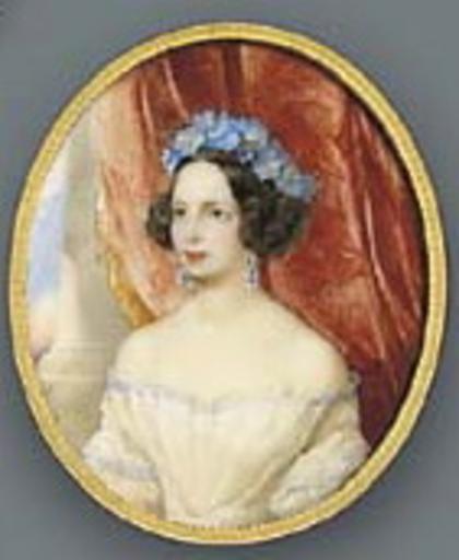 MAKE A MEME View Large Image Alexandra Nikolaevna, att. V.Hau (c. 1844, priv.coll.).jpg GRAND DUCHESS ALEXANDRA NICOLAEVNA OF RUSSIA 1825-1844 PRINCESS OF HESSE IN PALE BLUE-BORDERED WHITE DRESS DIAMOND SET SAPPHIRE DROP EARRINGS AND BLUE FLOWERS IN HER CURLING DARK ...