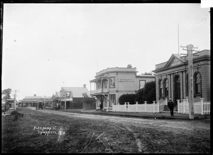 | Keywords: blackandwhite monochrome outdoor architecture photo border building black and white Alexandra Street, Te Awamutu, circa 1910s. Photograph taken by William Archer Price. On the right of the street are the Bank of New Zealand, Bathurst's Commercial Hotel, and Gifford & Dunkley's store. Inscriptions: Inscribed - Photographer's title on negative -bottom left: Alexandra St. Te Awamutu. 1714. Quantity: 1 b&w original negative(s). Physical Description: Dry plate glass negative 6.5 x 4.5 inches Alexandra Street, Te Awamutu, ca 1910. Price, William Archer, 1866-1948 :Collection of post card negatives. Ref: 1/2-001238-G. Alexander Turnbull Library, Wellington, New Zealand. natlib.govt.nz/records/22790835 Alexandra Street, Te Awamutu, circa 1910s. Photograph taken by William Archer Price. On the right of the street are the Bank of New Zealand, Bathurst's Commercial Hotel, and Gifford & Dunkley's store. Inscriptions: Inscribed - Photographer's title on negative -bottom left: Alexandra St. Te Awamutu. 1714. Quantity: 1 b&w original negative(s). Physical Description: Dry plate glass negative 6.5 x 4.5 inches Alexandra Street, Te Awamutu, ca 1910. Price, William Archer, 1866-1948 :Collection of post card negatives. Ref: 1/2-001238-G. Alexander Turnbull Library, Wellington, New Zealand. natlib.govt.nz/records/22790835 |