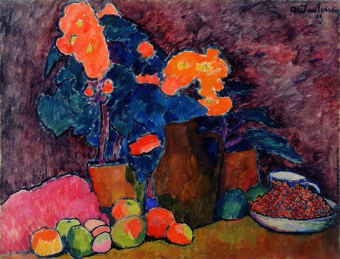 | Keywords: Alexej von Jawlensky - Cvetje, sadje in vrč.jpg Artwork creator Alexej von Jawlensky 1909 oil canvas cm 70 90 8 Institution National Gallery of Slovenia NGS1363 PD-old-auto-1923 1941 DEFAULTSORT Alexej von Jawlensky still lifes Blumen Obst und Krug 1909 Alexej von Jawlensky 20th-century paintings in the National Gallery of Slovenia 20th-century still life paintings in Slovenia 1909 paintings in Slovenia 20th-century oil on canvas paintings in Slovenia Vases in still-life paintings 20th-century still life paintings of flowers Still life paintings of tableware Still life paintings of fruits 1900s still-life paintings |