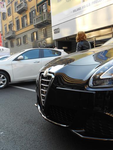 | Keywords: Alfa Romeo Giulietta (scudetto).jpg en Anterior of Alfa Romeo Giulietta it Anteriore di un'Alfa Romeo Giulietta particolare del paraurti e portatarga con scudetto sospeso e led dei gruppi ottici anteriori own Pava Cc-zero Automobile air intakes Alfa Romeo Giulietta 2010 Automobiles in Milan Two automobiles Black automobile body parts |