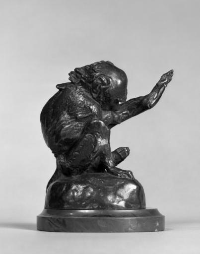 Keywords: Alfred Jacquemart - Monkey - Walters 542496 - Right Side.jpg Although Jacquemart studied with the painter Paul Delaroche French 1797-1856 and the decorative artist Jean-Baptiste-Jules Klagmann French 1810-67 he was deeply influenced by Antoine-Louis Barye French 1796-1875 and modeled numerous animal subjects in addition to large-scale commemorative works In this bronze a monkey is picking a flea from its armpit century 19 bronze with patina cm 10 16 approx accession number 54 2496 13462 Mrs E T Mudge III date and mode of acquisition unknown Walters Art Museum Gift of Mrs E T Mudge III in memory of E T Mudge III 1972 place of origin France Walters Art Museum license 19th-century bronze statues 19th-century sculptures in the United States Alfred Jacquemart Bronze sculptures in the United States Sculptures in the Walters Art Museum Statues of monkeys |