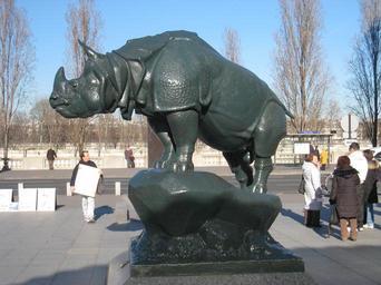 Keywords: Alfred Jacquemart - Rhinocéros.JPG Alfred Jacquemart - Rhinocéros - parvis du Musée d'Orsay Paris France This statue is old enough so that copyright if any has long since expired <p>Rhinocéros was commissioned for the 1878 Exposition Universelle and placed in the garden of the Palais du Trocadéro When the Palais was demolished the sculpture was located c 1935 to 1985 at Porte de Saint-Cloud Paris In 1986 it was assigned to the Musee d'Orsay Paris restored and placed on display in the forecourt </p> <p>Sources Horswell Jane 1971 Bronze sculpture of Les Animaliers references and price guide Clopton England Antique Collectors' Club p 292 http //www musee-orsay fr/fr/collections/catalogue-des-oeuvres/notice html no_cache 1 nnumid 016045 cHash 79133f2d1f Musee d'Orsay online catalogue retrieved 21 Jan 2014 </p> own I took this photograph 2008-02-08 Daderot Own work all rights released Public domain Rhinocéros by Alfred Jacquemart |