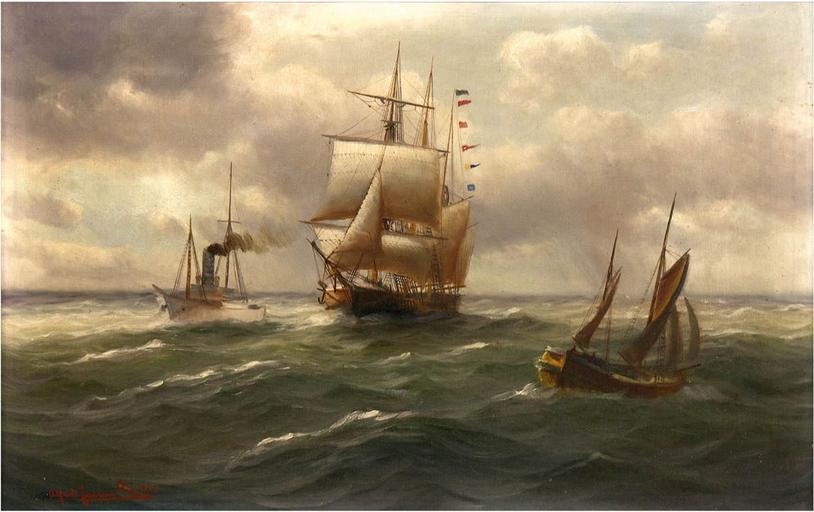 | Keywords: Alfred Jensen - Großsegler, Dampfschiff und Kutter auf hoher See (1914).jpg Artwork Creator Alfred Jensen Großsegler Dampfschiff und Kutter auf hoher See 1914 oil canvas cm 54 80 object history ~ lower left signature / date http //katalog auktionshaus-kuehlungsborn de/de/m/802/ Kühlungsborner Auktionshaus 30 12 2014 los 41 Other versions PD-old-auto-1923 1935 DEFAULTSORT Jensen Alfred; Marine; Kühlungsborner Auktionshaus 2014 Alfred Jensen marine painter Oil paintings of watercraft 19th-century sailing ships in paintings Oil paintings of seascapes |