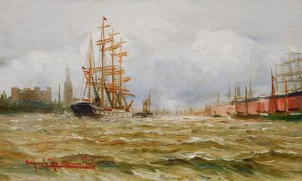 | Keywords: Alfred Jensen - Hamburger Hafen.jpg Alfred Jensen 1859-1935 other date oil canvas cm 25 36 5 accession number object history credit line sign Alfred Jensen Prof lower left http //www auktionshaus-stahl de/304/items/hamburger-hafen-147 html Auktionshaus Stahl PD-old-auto-1923 1935 Alfred Jensen marine painter Oil paintings of seascapes 20th-century sailing ships in paintings 19th-century sailing ships in paintings Port of Hamburg in art History of Hamburg Images from Auktionshaus Stahl Paintings not categorised by year |