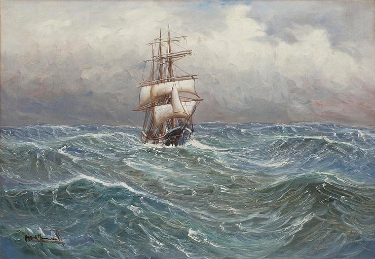 | Keywords: Alfred Jensen - Schiffsmotiv (02).jpg Alfred Jensen 1859-1935 Title Skeppsmotiv Ships motif Schiffsmotiv oil canvas cm 70 100 Prof Alfred Jensen ~ lower left signature http //www bukowskismarket com/items/391707-alfred-jensen-olja-pa-duk-signerad-och-otydligt-daterad Bukowskimarked late other date century 19 Other versions PD-old-auto-1923 1935 Alfred Jensen marine painter 19th-century sailing ships in paintings 19th-century oil on canvas paintings Oil paintings of watercraft Oil paintings of seascapes images from Bukowskis |