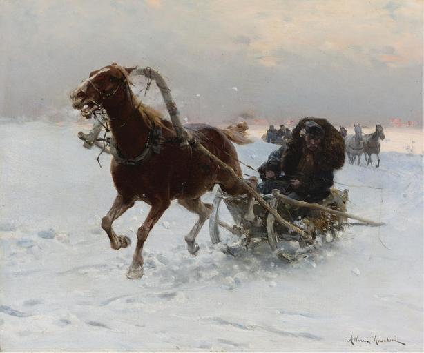 MAKE A MEME View Large Image Alfred Wierusz-Kowalski - Karawana sań.jpg Artwork Creator Alfred Wierusz-Kowalski de Schlitten Karawane en Sledding caravan oil canvas cm 32 7 39 1 http //www sothebys com/de/ecat pdf N08355 html/f/11/N08355-11 pdf by Sotheby's PDF object ...