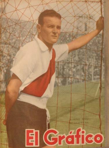 Keywords: Alfredo Ricardo Perez.jpg en Alfredo Pérez while playing for River Plate it Alfredo Pérez con la maglia del River Plate El Gráfico n 1846 1954 Sconosciuto El Gráfico PD-AR-Photo Players of River Plate