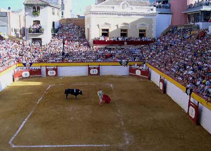 Keywords: Algemesi05.jpg Vista de la peculiar es cuadrada plaza de toros de Algemesí en Valencia España 2004-09-25 own assumed Juanma juesas Faena de muleta Algemesí bullring