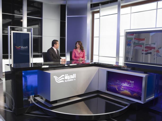 | Keywords: Alhurra's studio -- February 2011.jpg en Alhurra anchors on air from Alhurra's broadcast studio in Springfield VA - February 23 2011 2011-02-23 Middle East Broadcasting Networks U S government source Deirdre Kline PD-USGov Uploaded with UploadWizard Communication Television Broadcast Cable Satellite television News TV studio Alhurra |