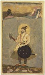 | Keywords: Ali Adil Shah II.jpg  en Sultan 'Ali 'Adil Shah II Made in Bijapur Karnataka India c 1670 Artist/maker unknown India Karnataka Bijapur Opaque watercolor and gold on paper 10 5/16 x 6 1/16 inches 26 2 x 15 4 cm Currently not on view 2004-149-38 Alvin O Bellak Collection 2004 Label During the reign of Sultan 'Ali 'Adil Shah II of Bijapur reigned 1656-72 ruler of one of the five Islamic kingdoms of the Deccan the threat of Mughal military domination increased In painting however the Deccani preference for fanciful decorative compositions reasserted itself over the Mughal naturalism that had filtered into Bijapuri painting during the previous three decades The sultan stands in a strange landscape; a small hill gives way to a mysterious field of gray that ends abruptly at a group of pink and blue rocks where birds perform aerial tricks 'Ali 'Adil Shah is oddly drawn his fingers distorted to follow the shape of his shield rather than the form of human anatomy http //www philamuseum org/collections/permanent/96048 html mulR 5018 Author ~ 1670 PD-art Ali Adil Shah II Small-sized paintings Paintings of men of Karnataka 17th-century Mughal miniatures Watercolor paintings of men of India Karnataka in the 1670s 1670s paintings from India |