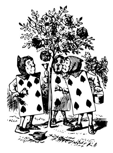 Keywords: alice wonderland guards queen cards fantasy story cartoon imagination drawing lewis carroll adventures fairytale loyal servants painting roses red white