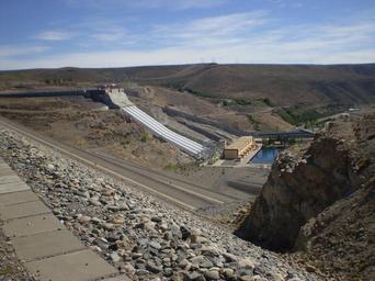 Keywords: Alicura231.JPG Represa de Alicurá sobre el río Limay Argentina Own 2008-01 Claudio Elias 40 35 22 8 S 70 45 6 8 W heading NNE FoP-Argentina Alicurá Dam