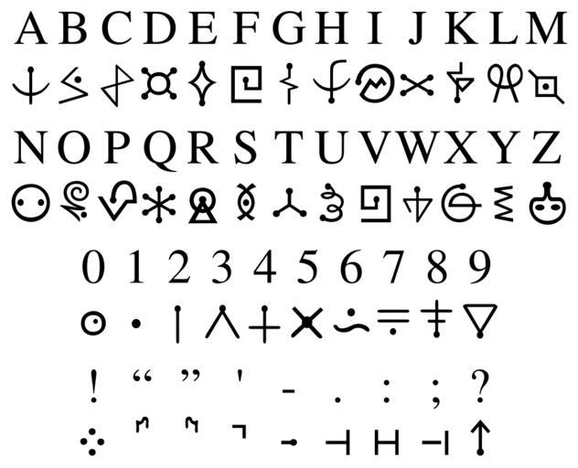 | Keywords: Alien decoder Futurama.svg A table of one of the alien alphabets used in Futurama TV cartoon show made by using the standard Times Roman font and the Futurama Alien Alphabet One v1 6 font by Darrell Johnson Leandro Pardini available at http //www futurama-madhouse net/fonts/index shtml Futurama-Madhouse The layout of this table was influenced by Alien_decoder png by en User WillMak050389 though not the same Now updated with a version of the question-mark character see en File_talk Alien_decoder_Futurama svg File Alienese jpg etc Self-made using fonts 2009-07-24 This version by User AnonMoos previous version by User The New Mikemoral PNG by en User WillMak050389 AnonMoos Fictional alphabets Futurama Alphabet charts |