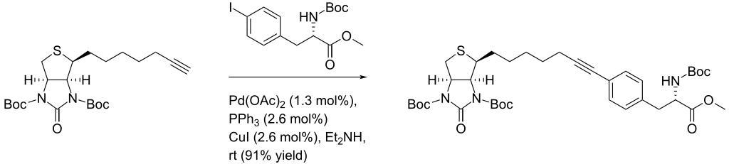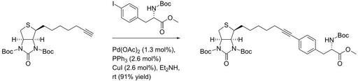 | Keywords: Alkynylation.svg Diagram showing the chemical reaction involving Sonogashira reaction of a phenylalanine derivative with an alkyne Modified from File Alkynylation gif to correct chemical errors Own 20 28 18 January 2012 UTC Ed Edgar181 Sonogashira reactions |
