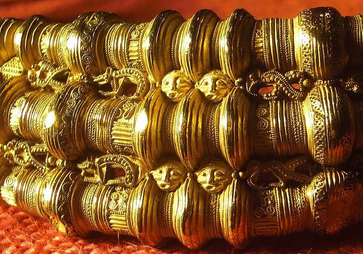 | Keywords: Ållebergskragen kopia 2011-03-03 bild 1.jpg en Detail of a copy of Ållebergskragen i e The golden collar of Ålleberg that since 1994 is shown in the exhibition Forntid på Falbygden i e Prehistory in the Falbygden area at Falbygdens museum in Falköping Västergötland Sweden Ållebergskragen was found in 1827 at the northen slope of the table-mountain Ålleberg Karleby Parish Vartofta Hundred Västergötland Sweden The golden collar belongs to the Migration period sv Detalj av kopia av Ållebergskragen som sedan 1994 visas i utställningen Forntid på Falbygden på Falbygdens museum i Falköping Ållebergskragen hittades 1827 vid platåberget Ållebergs norra brant i Karleby socken i gamla Ållebergs fjärding i Vartofta härad i Västergötland i Sverige Guldhalskragen dateras till folkvandringstid own Gunnar Creutz Achird 2011-03-03 Cc-zero Ållebergskragen Forntid på Falbygden permanent exhibition Photos of prehistoric archaeology by User Achird CC0 1 0 Files by Gunnar Creutz |