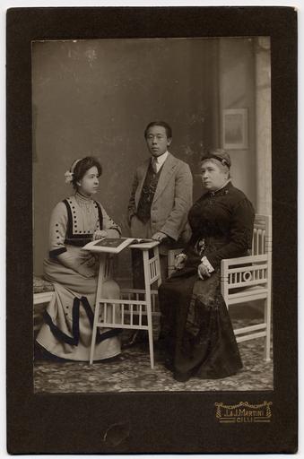 Keywords: Alma M. Karlin z zaročencem Hsu Singjung Lungom in materjo.jpg Alma M Karlin z zaročencem Hsu Singjung Lungom in materjo s 1910 http //www ugm si/dogodki/predavanje-alma-karlin-in-skrivnostna-kitajska-2398/ J J Marini Celje PD-Slovenia Alma Karlin 1910s portrait photographs 20th-century group portrait photographs from Slovenia Photographs by Julija and Josef Martini