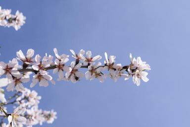 Keywords: almond blossom flowers almond blossom white pink branch blooming sky tree spain tranquil peaceful serene