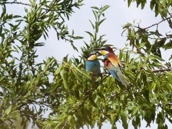 Keywords: almond tree couple bee-eater bird colors abellarol