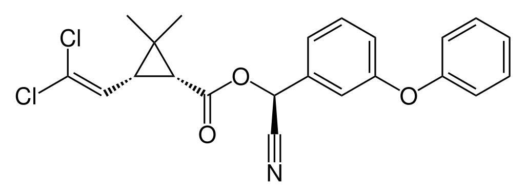 Keywords: Alpha-cypermethrin.svg chemical structure of alpha-cypermethrin made using BKchem Own 2007-01-12 User Bryan Derksen Cypermethrin
