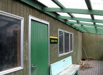 Keywords: Alpha Hut 3.jpg Entrance door to Alpha Hut W Tararua Range 2013-04-04 own Sarang Alpha Hut