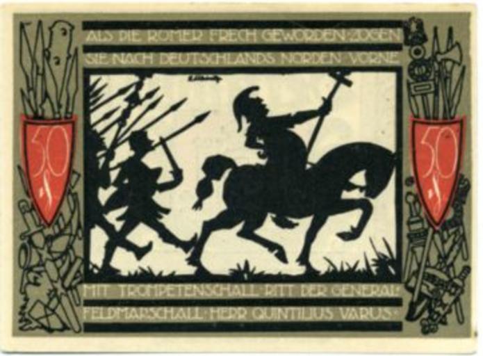 Keywords: Als die Römer frech geworden - Notgeld der Stadt Detmold.jpg Als die Römer frech geworden Notgeld der Stadt Detmold historisches offizielles Zahlungsmittel Public Domain de wikipedia Septembermorgen CommonsHelper 2005-09-29 Rabe wikipedia de PD-old original upload log page de wikipedia Als_die_R C3 B6mer_frech_geworden_-_Notgeld_der_Stadt_Detmold jpg 2005-09-29 20 38 Rabe 361×266× 26022 bytes <nowiki> Als die Römer frech geworden Notgeld der Stadt Detmold historisches offizielles Zahlungsmittel Public Domain</nowiki> Notgeld of Detmold Battle of the Teutoburg Forest Banknotes with a face value of 50 |